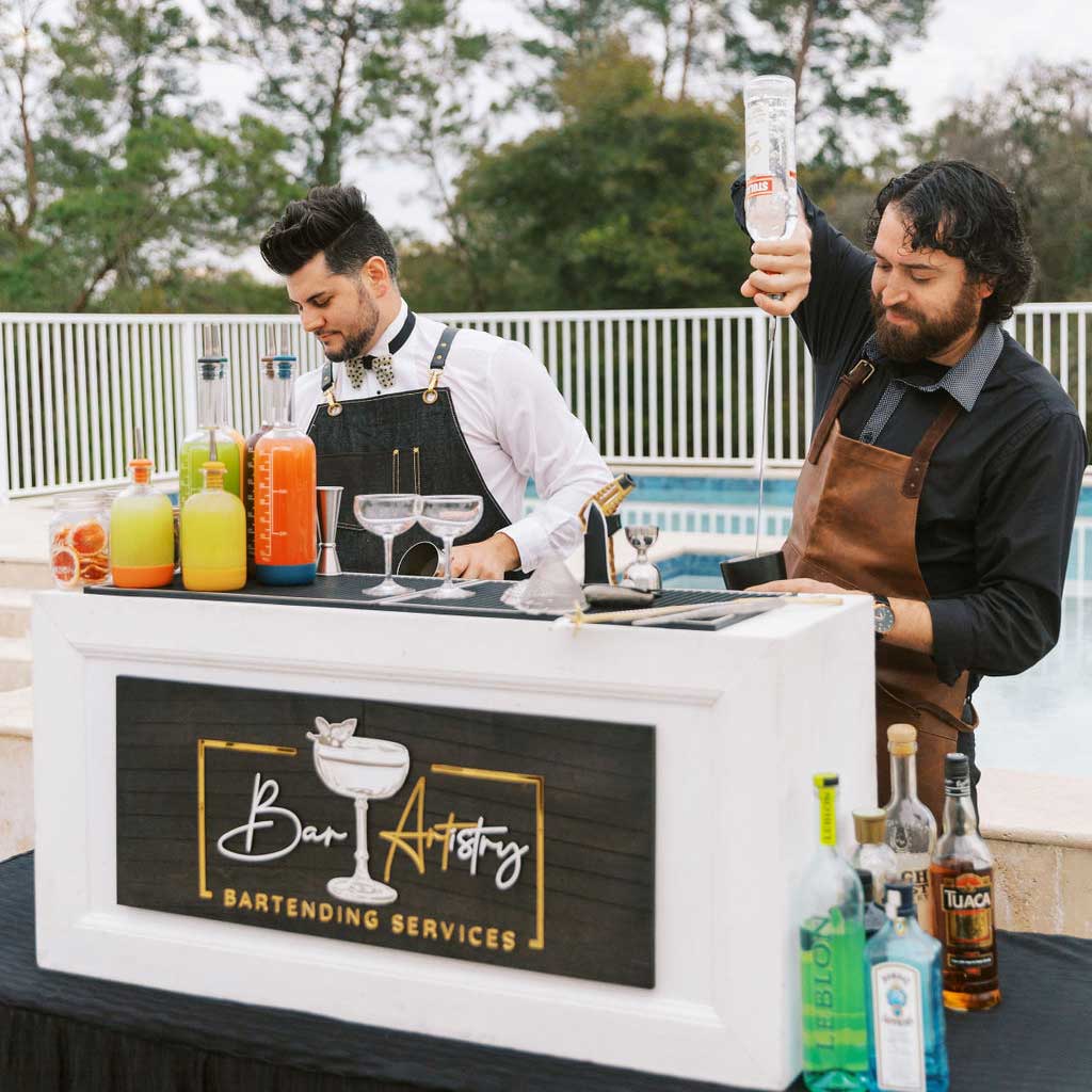 Bar Artistry provided the photography for the wedding we feature on our site. Bar Artistry is also one of our Trusted Vendors! If you want more than a bar service ... if you want talented mixologists that also entertain and engage your guests ... check out their website and consider using them for your event.